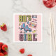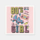Ilustracion de estilo Memphis colorido con diseño de texto "Chica de los 80" y patinaje sobre ruedas, boombox, cassette y formas geométricas
