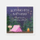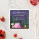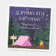 Servilletas para fiesta de cumpleaños de chicas glamping con una tienda rosa linda y fogata en un fondo de bosque nocturno estrellado. Estas servilletas para fiesta de cumpleaños de chicas camping se personalizan fácilmente para su evento simplemente agregando sus detalles en el estilo de fuente y redacción de su elección.