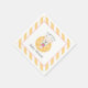 Un diseño de servilleta de papel brillante y alegre para una ducha de bebé, una fiesta de cumpleaños, un fiesta de billar y más, este diseño tiene un oso de peluche con traje de baño rosa y verde sobre un flotante amarillo de la piscina. Las rayas diagonales amarillas y blancas enmarcan el diseño con un color añadido. Una plantilla de texto le permite personalizar de este diseño para cualquier evento, personalizando el texto mostrado en la plantilla de diseño al texto deseado.