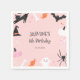 Cute tema de halloween chica de cumpleaños servilleta con ilustracion de criaturas y objetos de halloween.