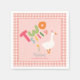 Este lindo y caprichoso diseño de servilletas de 2º cumpleaños de chicas presenta una gallina de oca tonta con un gorra fiesta rosa, con un borde de gingham, y puede ser personalizado con el nombre de sus chicas. ¡El diseño perfecto para tu segundo cumpleaños!