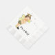 Servilletas para baby shower de bebé abeja con un adorable bebé moreno de pelo oscuro con un disfraz de abeja en un fondo blanco con abejas zumbando. Puedes agregar el texto que desees para personalizar esta servilleta para baby shower de abeja.