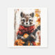 Un chipmunk con una bufanda roja toca una guitarra entre las hojas de otoño. Las acogedoras vibraciones del bosque le dan un encanto animal divertido.
