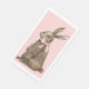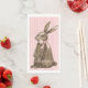 This Easter guest towel has a hand watercolored chocolate bunny with a pink bow on a pink background.