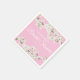 Servilletas elegantes y bonitas de flor blanca para fiesta de compromiso con delicadas flores de primavera enmarcando los detalles de su fiesta de compromiso en un texto blanco de letra cursiva elegante sobre un fondo de color rosa. Personalice con los detalles de su evento especial. Diseñado por Thisisnotme©