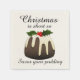 Christmas paper cocktail napkins with slogan "Christmas is short so savor your pudding" with delicious looking Christmas pudding decorated with holly.