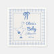 Como ven esta singular y elegante servilleta azul ganso bebé ducha de bebé tiene una plantilla bien diseñada. Con la mano azul dibujada con la cabeza de oca y la lazo y el nombre y fecha escritos a mano en escritura azul. Y los cuadrados de cuadros de cuadros de cuadros azules a cuadros. Todo sobre fondo crema. Lo que puede personalizar fácilmente haciendo clic en el botón de personalización.