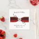 Bonitas toallas especiales de papel ocasión, con gráficos de un diamante como el corazón en una cinta de damasco roja, con florituras negras. Personalice el texto negro para su evento.