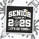 Esta clase de año 2025 de diseño animador es perfecta para estudiantes de secundaria o graduados universitarios. ¡Genial para el animador de clase superior celebrando su último año escolar en el equipo animador antes de su graduación de 2025! Características 'Clase Senior de 2025 - ¡Ya es hora!' cita senior con gorro de graduación y tassel con color de escuela plateada animando el gráfico pom para el orgulloso animador de clase superior! ¡Excelente para 2025 cursos de secundaria animadores y juegos de deportes escolares!
