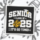 Esta clase de año 2025 de diseño animador es perfecta para estudiantes de secundaria o graduados universitarios. ¡Genial para el animador de clase superior celebrando su último año escolar en el equipo animador antes de su graduación de 2025! Características 'Clase Senior de 2025 - ¡Ya es hora!' cita senior con gorro de graduación y tassel con color de escuela oro animando la imagen pom para el orgulloso animador de clase superior! ¡Excelente para 2025 cursos de secundaria animadores y juegos de deportes escolares!