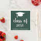 La servilleta minimalista de graduación presenta un diseño sencillo y clásico con una tapa de grado y una "clase del año" en una escritura gruesa con el nombre del graduado en blanco sobre un fondo verde del bosque. El color de fondo puede cambiarse a cualquier color que desee. Un estilo tradicional con un toque moderno para un graduado chica. Estas servilletas de papel son una excelente manera de añadir un toque personal a tu fiesta de graduación.