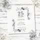 Con un elegante diseño floral de plata en acuarela, este diseño botánico chic para el aniversario de bodas de 25 años se puede personalizar con la información de su aniversario especial en texto moderno de plata. Diseñado por Thisisnotme©