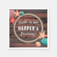 Create a beautifully styled party table with these Coastal Cowgirl Western Beach Birthday Personalized Napkins. Designed with a rustic wood background and a rope badge centerpiece, this napkin blends western charm with soft coastal details like seashells and starfish in coral pink and turquoise accents.