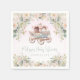 Servilletas para baby shower de princesa pastel con coche de princesa de cuento de hadas vintage en un hermoso fondo floral de acuarela. Estas servilletas para baby shower de princesa se pueden personalizar fácilmente con la información de su evento.