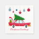 Servilleta De Papel Coche rojo retro que lleva un árbol de Navidad
