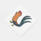 Un gallo se tambalea. Este diseño parece realmente efectivo en estas servilletas de papel