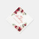Rosas rojas bonitos y peonías rosadas de colores vivos decoran las servilletas de cóctel de la fiesta de cumpleaños número 90. Dos preciosas instalaciones florales decoran dos esquinas. Elegante caligrafía detalla 100 cumpleaños y el nombre del celebrante de cumpleaños está debajo. Este artículo forma parte de la colección Red Rose and Pink Peony. Contiene plantillas de invitación diseñadas profesionalmente, plantillas de signos de bienvenida y suministros de fiesta personalizados.