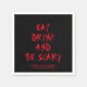 Coma bebida y sé espantante tipografía de sangre de vampiros rojo miedo gracioso personalizado personalizado Halloween partido servilletas de papel. Texto de personalizable de sangre roja sobre fondo negro. Personalizable completo de texto, para que puedas escribir tu propia frase.