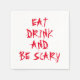 Servilleta De Papel Comer bebida y tener miedo texto de sangre roja Ha