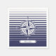 Un diseño náutico con un rosa de brújula ornamentado con rayas azules y blancas y una etiqueta con texto de personalizable.