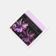 Impresión cautivadora con hojas grandes y estilizadas semitransparentes en color violeta brillante, rosa, verde azulado y naranja sobre fondo negro y nombres de muestra de la pareja amorosa con acentos de lavanda clara. Los nombres de ejemplo se pueden cambiar utilizando la opción "personalizar".