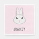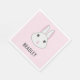 Adorable ilustracion de conejo blanco sobre un encantador fondo rosado, con un nombre personalizado para un delicioso toque de individualidad.