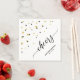 Esta servilleta de papel personalizada añadirá un detalle elegante a tu día especial. Este diseño presenta letras de estilo script "brindis" con un fondo de confeti en forma de hexágono. Decoración de fiesta perfecta para una fiesta de cumpleaños moderna con tema negro y dorado. Hay más invitaciones y suministros para fiestas disponibles en mi tienda BaraBomDesign.