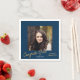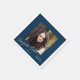 Esta servilleta de papel de la fiesta de graduación incluye una foto cuadrada y texto de escritura dorada en un fondo azul oscuro. El texto del guión dice: Felicitaciones Grad. Personalice con su foto preferida para adultos con un acento divertido para la celebración de su fiesta de graduación.