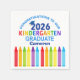 This adorable 2026 kindergarten graduation party paper napkin features a cool grad cap above colorful writing and a row of crayons in rainbow. Cute customizable kindergartener graduate decor in fun colors for the last day of elementary school with your kid's name personalized in blue. Congratulations to our kinder grad!