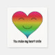 Un corazón arcoiris sonriente y el texto romántico "Me haces sonreír el corazón". Este es un diseño sobre amor y felicidad.