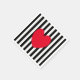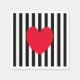 Corazón rojo sobre fondo rayado blanco y negro