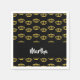 Añade tu nombre en esta corona dorada sobre el diseño de patrones de fondo negro.