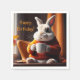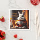 Estas servilletas de papel de cumpleaños incluyen un conejo acogedor que toma su café matutino.