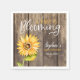 Rústica y rústica servilleta de papel para bebés con ilustracion de color girasol sobre un fondo de madera. Personalizar este producto agregando el nombre de la futura mamita. Elegante diseño de duchas de verano para chicas y niños.