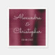 Cranberry Borgoña y blanca a medida boda o cena de bienvenida servilletas. El texto de las servilletas simples y elegantes de Cranberry Burgundy se puede actualizar y personalizar con su nombre y fecha de boda.