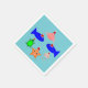 Este impresionante conjunto de servilletas de papel presenta una colección de criaturas marinas con sombreros de santa. Los animales marinos incluyen un par de peces azules, un pequeño cangrejo rosa de aspecto descarado, una estrella de mar amarilla, una medusa brillante y una linda tortuga verde.