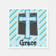 Guay, cruz de niño colorida, cristiana, católica, religiosa, religiosa, diseño azul en el patrón de las franjas azules y amarillas. ¡Un regalo perfecto para el bebé, el niño, los niños, los adolescentes o los adultos! Personalizó la plantilla de diseño agregando el nombre o el texto personalizado de un hijo. Visita nuestra tienda, Birthday Party House, para más grandes productos de personalizable y chica!