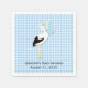 Las toallas de papel de baño para bebés hechas en un patrón de revisión de gingham azul y blanco, con gráficos bonitos de una cigüeña sosteniendo un paquete de bebé azul. Personalice el texto negro para su evento de ducha de bebé. Hay placas de papel de coordinación e invitaciones disponibles.
