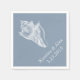 Una magnífica imagen vintage de una concha de mar de color blanco se coloca sobre un bonito fondo azul polvoriento para hacer esta gran servilleta temática de playa, lista para personalizar con sus propios nombres y fecha. Los elementos coincidentes están disponibles en mi tienda Zazzle.
