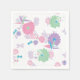 Un conjunto de servilletas de papel con un diseño japonés de grúas de papel de origami y flores en rosa, púrpura, verde y azul, contra un fondo de textura de papel.
