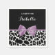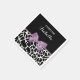 Unas servilletas de papel pintado en blanco y negro con una cinta violeta de lavanda atada en un arco femenino. Personalice este diseño de impresión animal de bonito agregando el nombre del chica fiesta. Imagen plana impresa, no arco real.