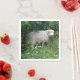 Este impresionante conjunto de servilletas de papel muestra una fotografía de una bonita oveja esponjosa. La oveja está rodeada de flores silvestres y de hierba larga y está comiendo algunas hojas. Tiene un grueso abrigo blanco de lana y una nariz negra linda.