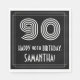 El diseño de la servilleta de papel inspirado en el estilo de los años 20-30 presenta un gran estilo Art Decó inspirado en el número "90", el mensaje "FELIZ CUMPLEAÑOS 90", un nombre de personalizable y un patrón fronterizo formado por líneas. Unas toallas de papel personalizadas y divertidas como esta podrían ser usadas en un fiesta que se celebra el cumpleaños 90 de alguien. [~Z0000395]