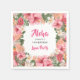 Este diseño de servilletas de papel para luau de cumpleaños tropical Aloha presenta un lujoso diseño floral de hibisco rosa al estilo hawaiano. Personalizado con su información. Perfecto para muchos eventos: cumpleaños, graduaciones, bodas, fiestas de bebé y más. Disponibles invitaciones y suministros para fiestas a juego.