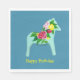 Este producto Dala Horse Napkins de cumpleaños es de un caballo de madera diseñado, tallado y pintado por Julia Morrill