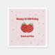 Toallas de fresa con puntos de polka en un fondo rosado para usarlas como fiesta de cumpleaños. Puedes cambiar el mensaje y usarlo para una ducha de novia, un boda, un fiesta de verano o lo que quieras.