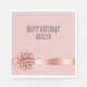 Servilleta De Papel Cumpleaños de Rubor Rosa Gold Ribbon Bow