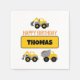 Camiones de construcción amarillos decoran esta servilleta de cumpleaños personalizado, haciéndolo perfecto para su fiesta de camión de construcción.