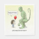 La niña trae un globo rojo al duende verde en su cumpleaños.