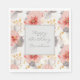 Servilleta De Papel Cumpleaños Floral Gris Coral Sonrojo